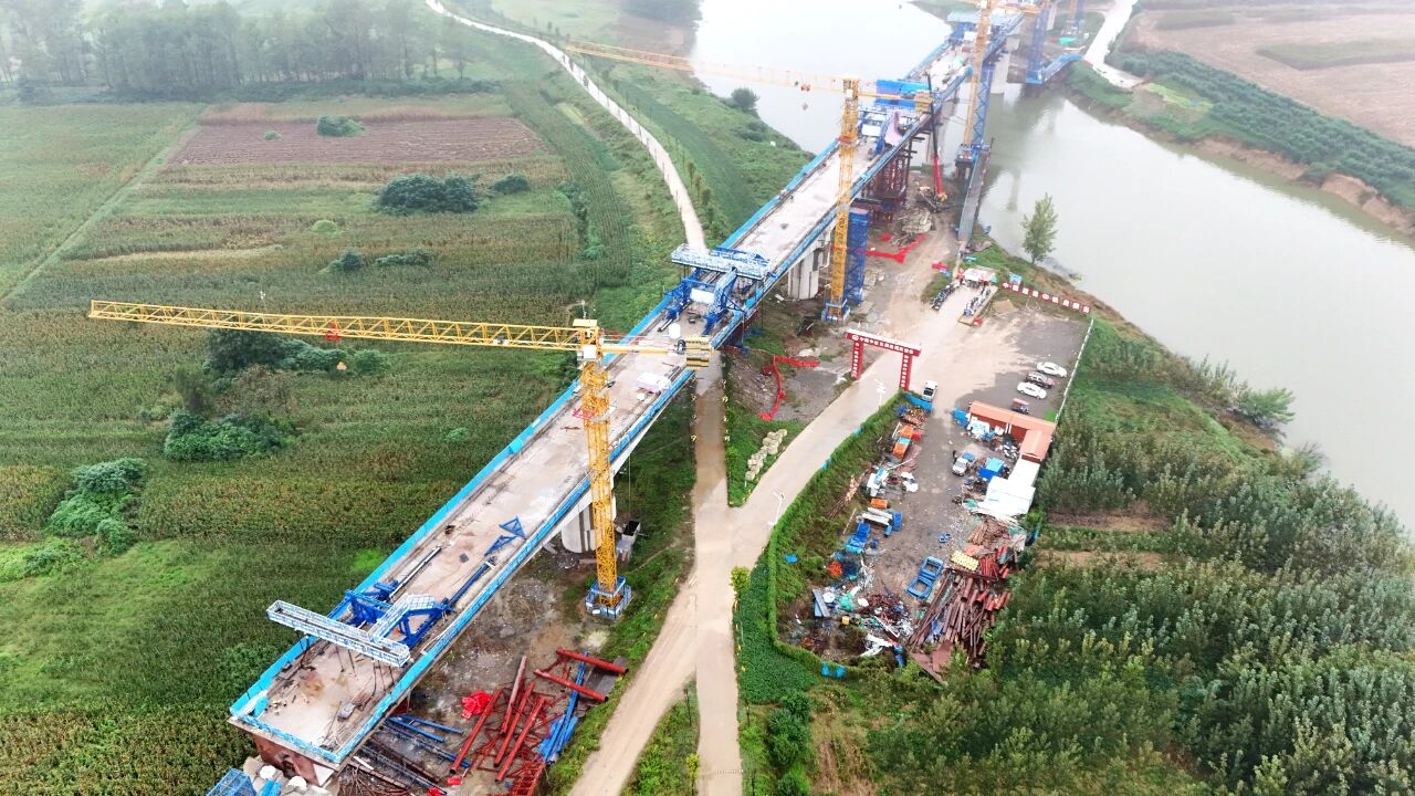 平漯周高鐵站前四標跨澧河河堤路及跨Y025鄉道連續梁順利合龍