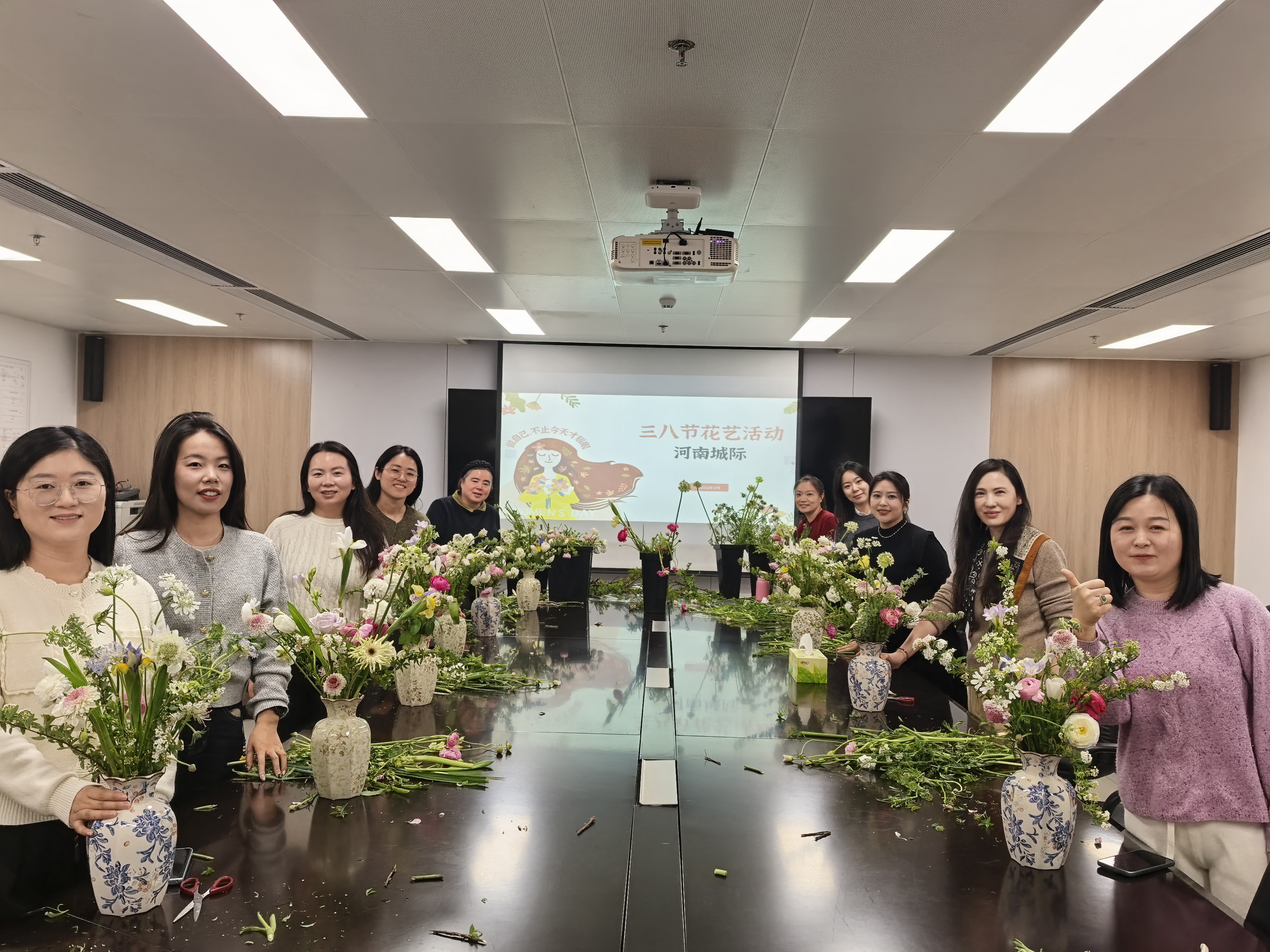 河南城際組織開展“花香悅生活 巾幗綻芳華”主題插花活動。在花藝老師的指導下,女職工們興致高漲,動手修剪花材、搭配造型,將普通花材打造成獨具匠心的花藝作品。此次活動讓女職工在感受美、創造美的過程中陶冶情操、增進交流,大家表示將以飽滿熱情投入工作,為集團發展貢獻巾幗力量。